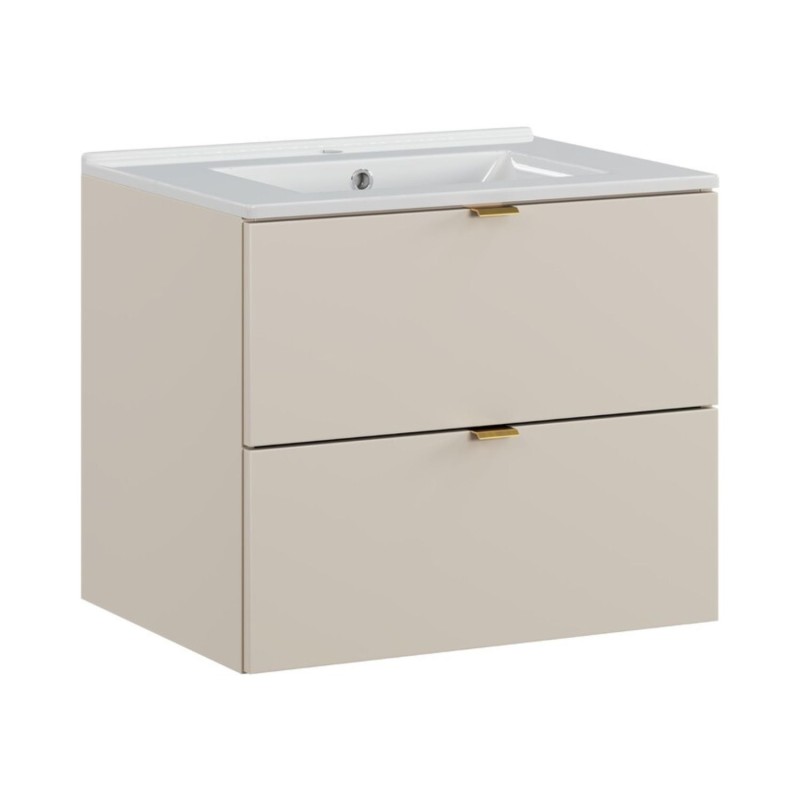 Optimisez votre espace avec cet ensemble de salle de bain BELLA 60 cm en finition cachemire mat. Il comprend un meuble sous vasque et une vasque encastrée rectangulaire blanche en céramique, idéale pour une salle de bain moderne et fonctionnelle.