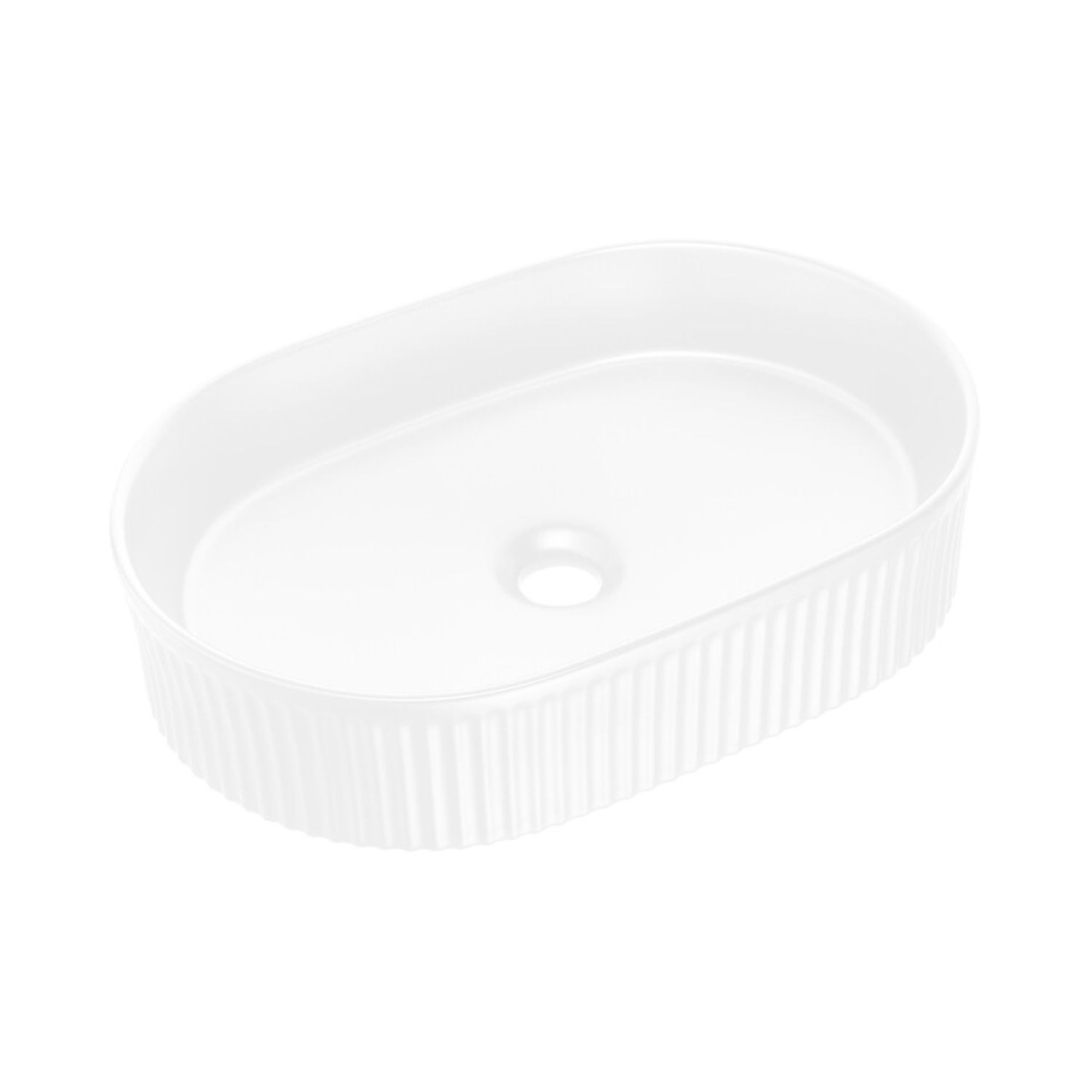 Le meuble est équipé de deux placards avec ouverture battante permettant de ranger facilement les accessoires et produits de toilette. La vasque à poser en céramique rainurée ajoute une dimension décorative tout en offrant un confort d’utilisation au quotidien.