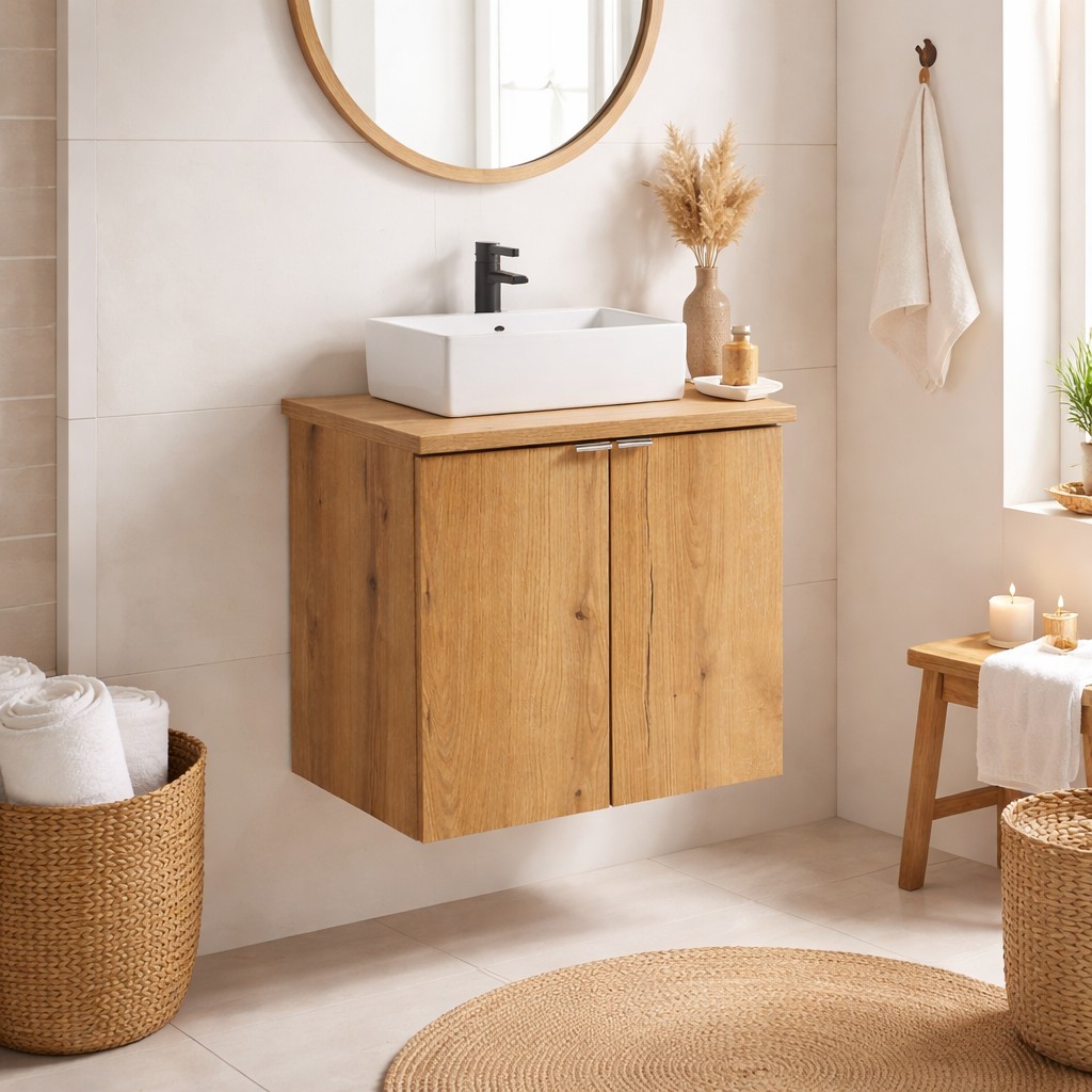 | Contenu du pack | 1 meuble sous vasque 2 portes + 1 plan pour vasque + 1 vasque à poser |