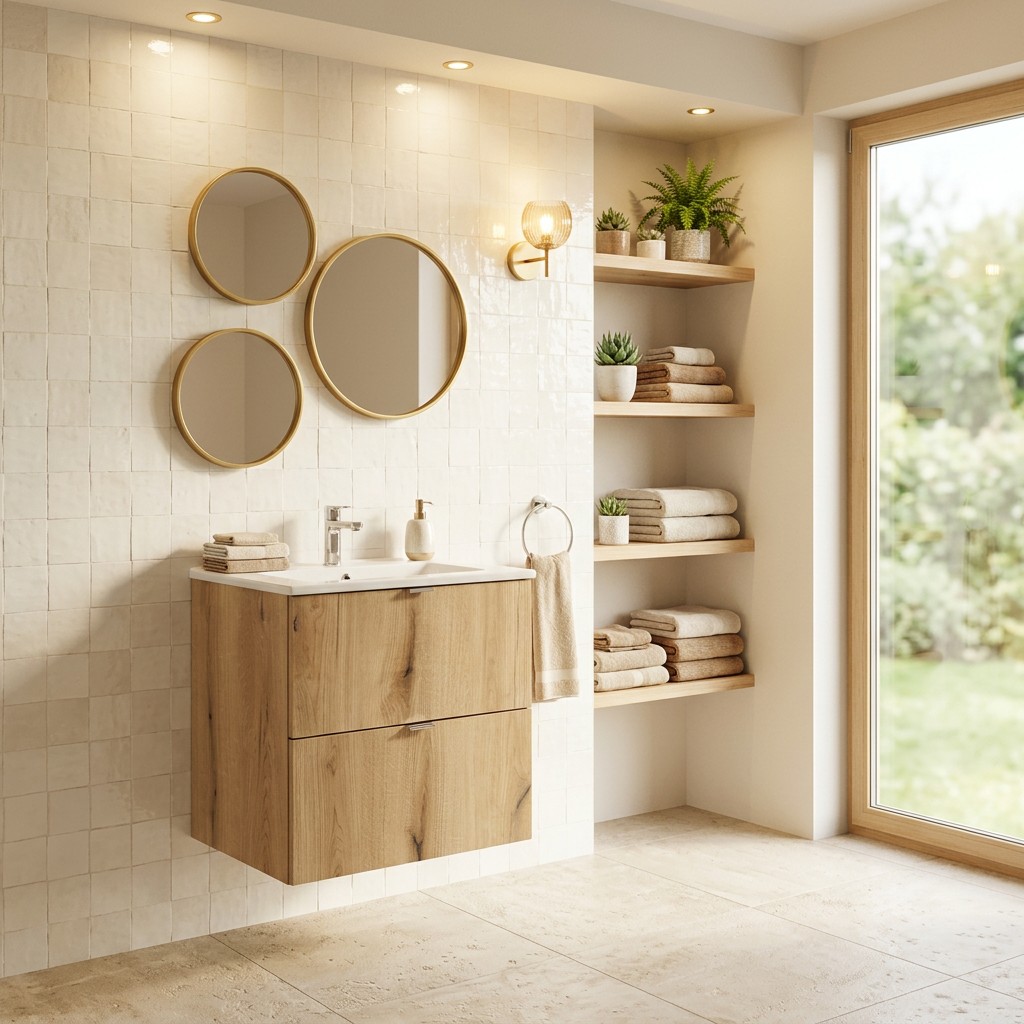Le meuble sous vasque avec 2 tiroirs permet d’organiser efficacement vos produits du quotidien tout en conservant un accès simple et rapide.