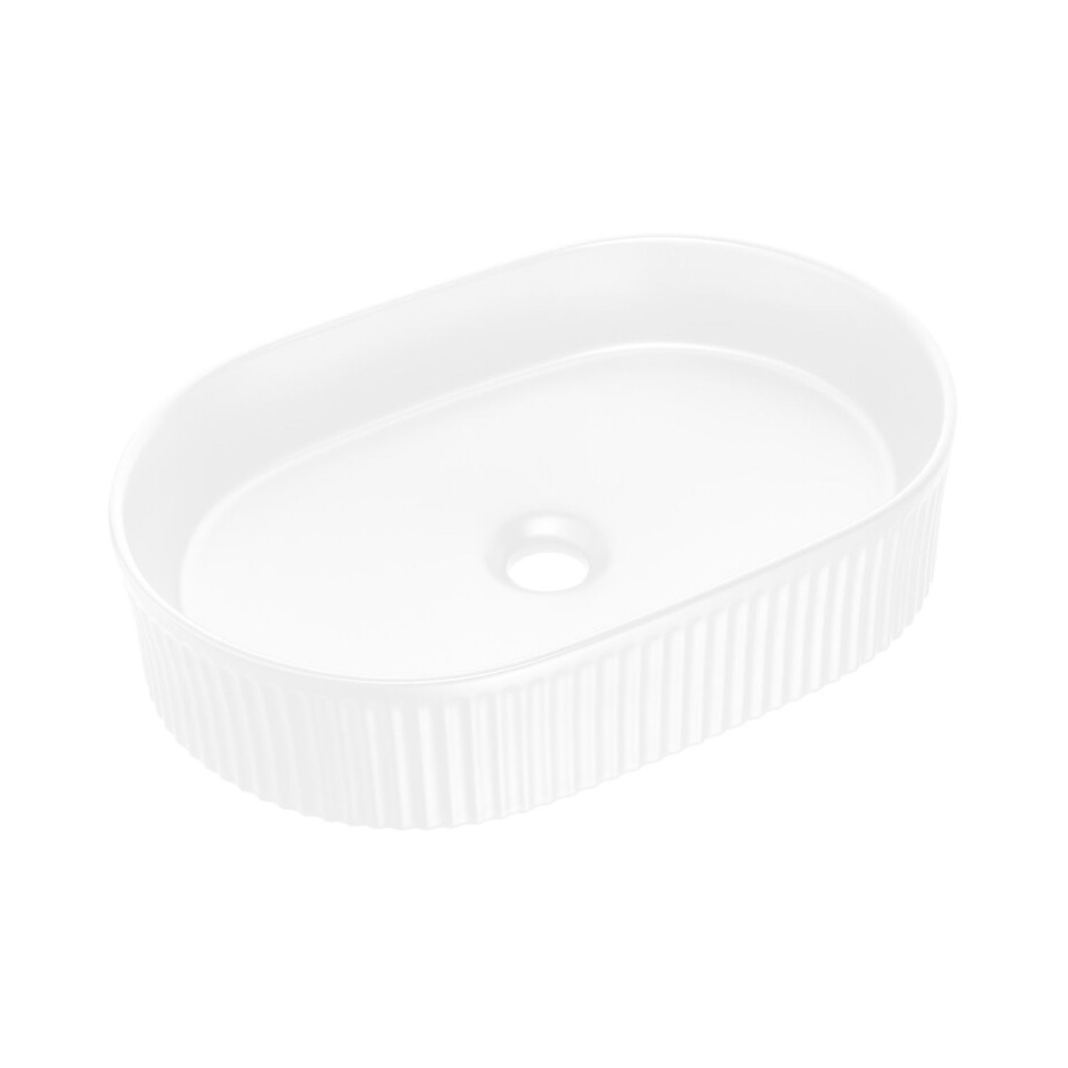 La vasque à poser en céramique blanche, avec sa forme ovale et ses rainures verticales, apporte une touche design originale et raffinée à votre salle de bain.