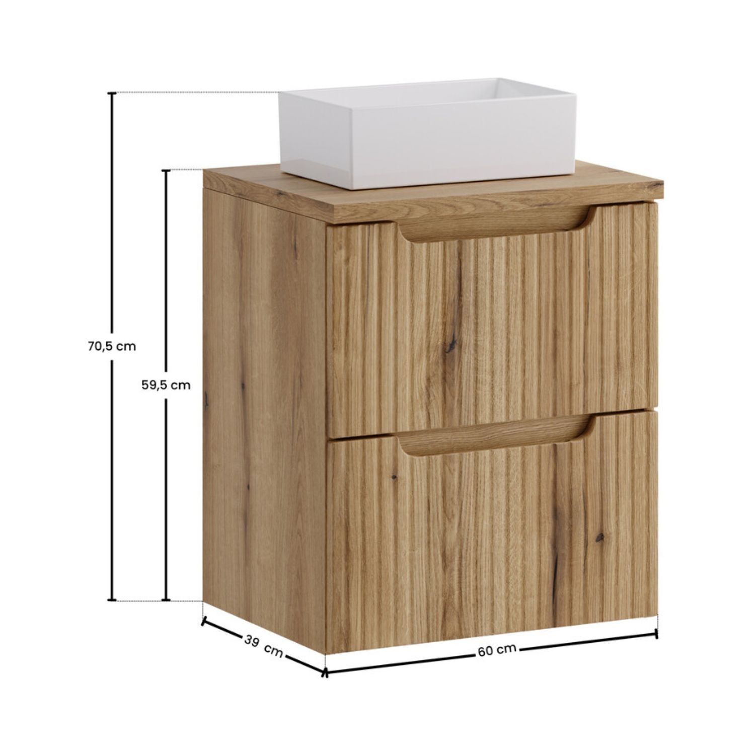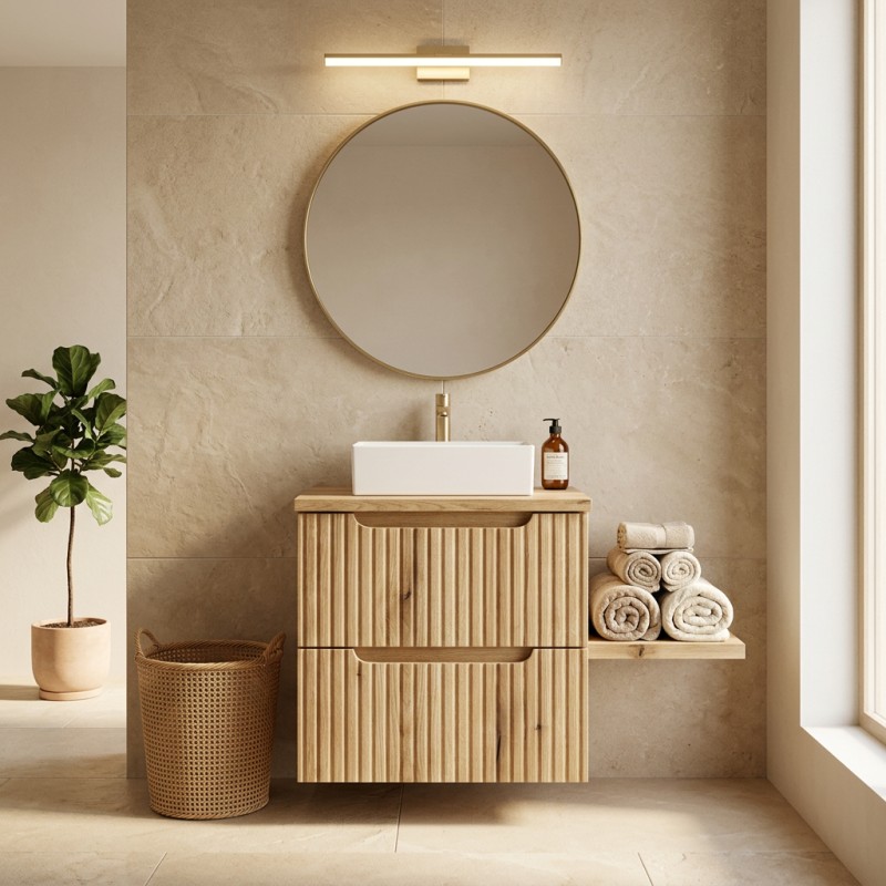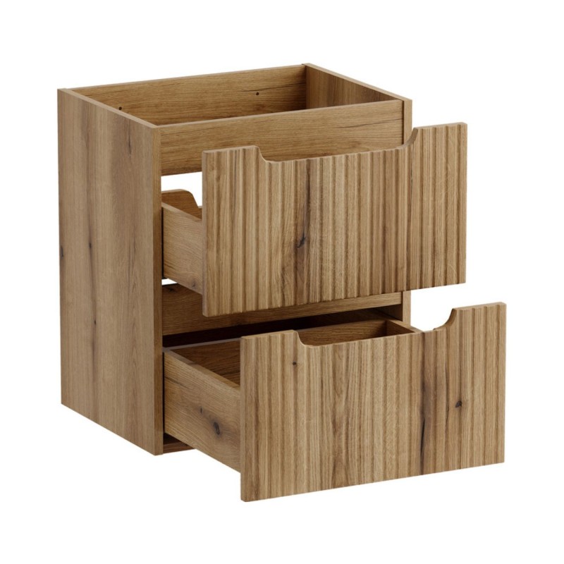 Le meuble sous vasque avec 2 tiroirs coulissants en chêne clair permet d’organiser efficacement vos produits du quotidien tout en conservant un espace épuré et fonctionnel.