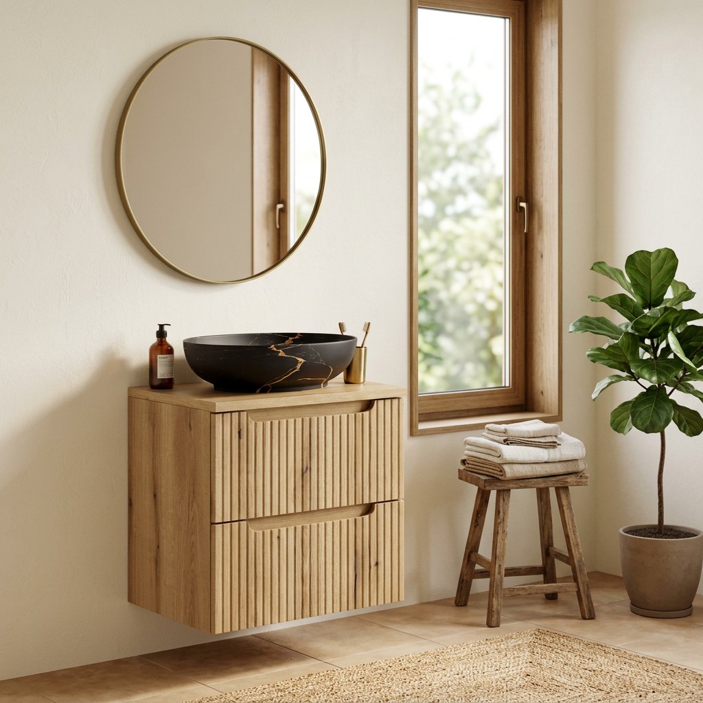 Grâce à sa pose suspendue, ce meuble libère l’espace au sol et facilite l’entretien pour un quotidien plus pratique.