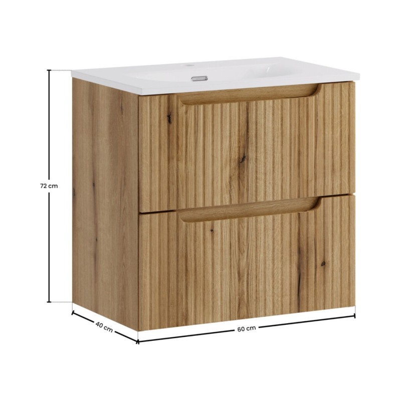 Apportez modernité et élégance à votre salle de bain avec cet ensemble suspendu VANO 60 cm, conçu dans un superbe aspect chêne clair lumineux et naturel.