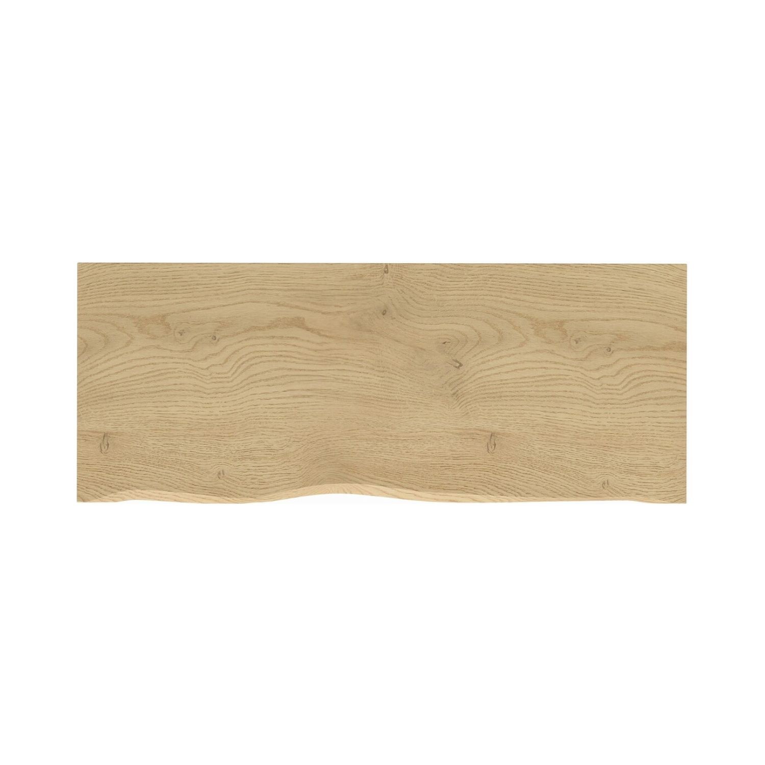 Le plan pour vasque se distingue par sa bordure avant biseautée et irrégulière, apportant une touche naturelle et authentique à l’ensemble.