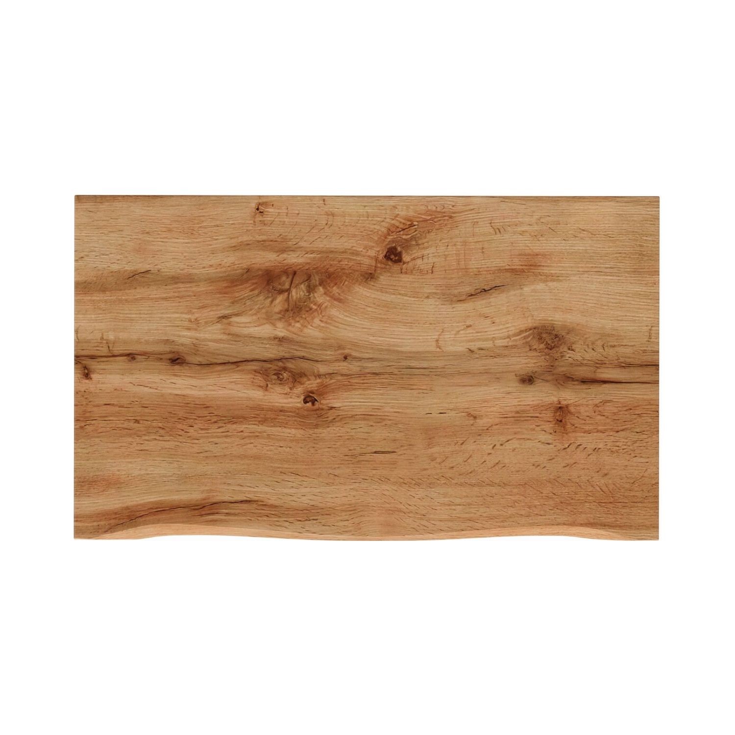 Le plan pour vasque se distingue par son bord avant irrégulier et biseauté, apportant une touche d’originalité et de modernité à l’ensemble.