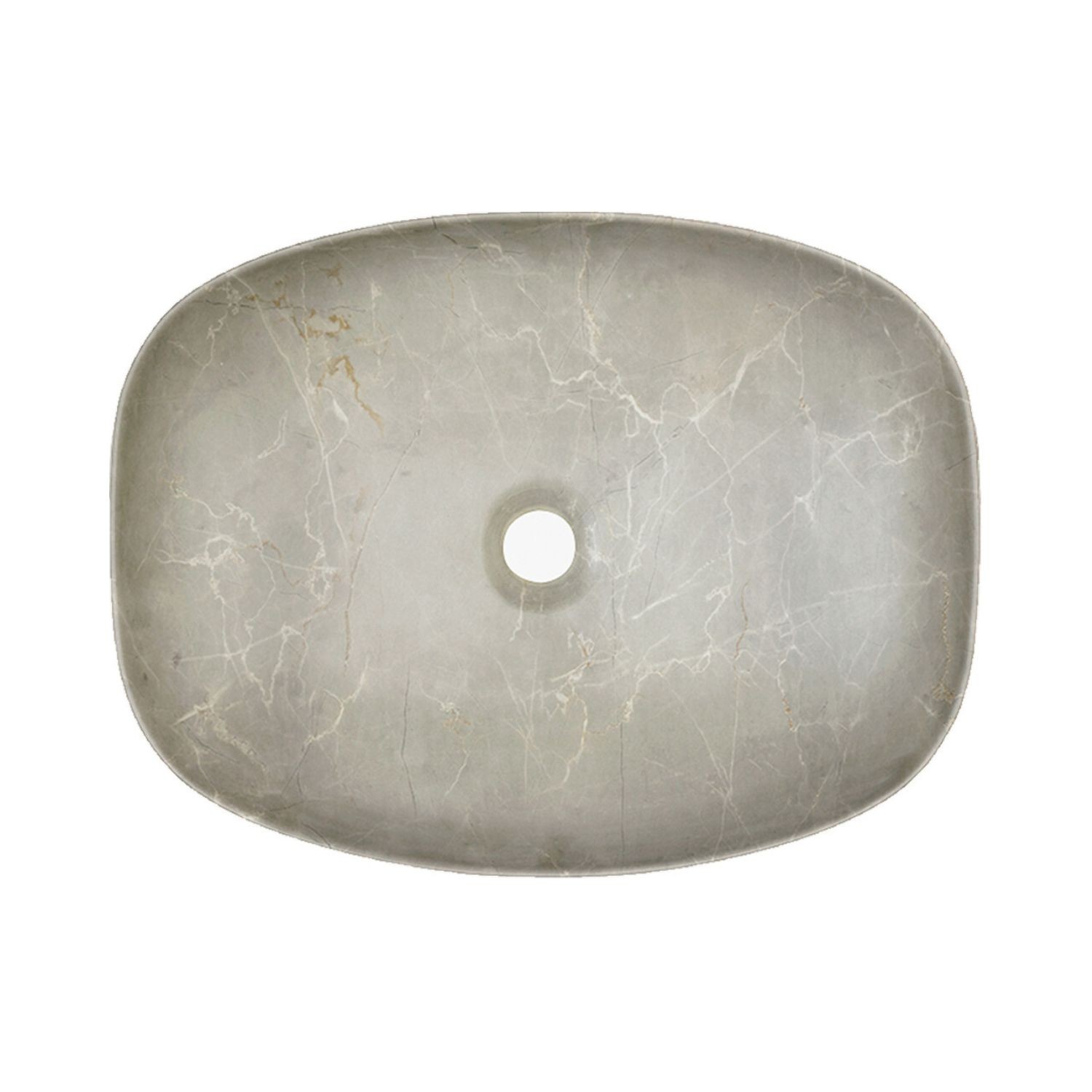 La vasque à poser en céramique, avec son effet pierre naturelle grise et sa forme ovale, renforce le style élégant et haut de gamme de cette composition.