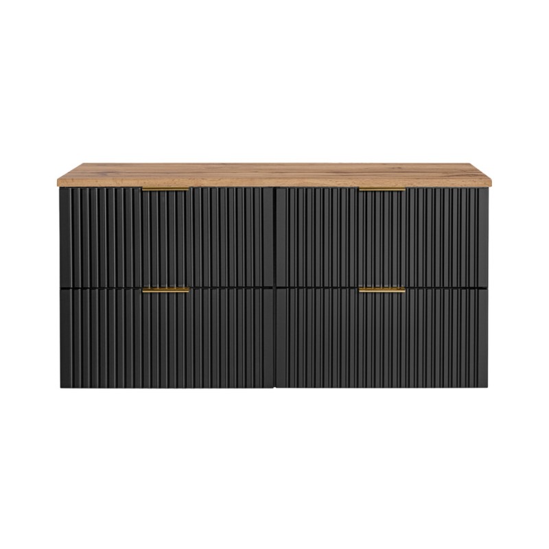 Avec ses façades noir mat et son plan pour vasque en finition chêne wotan, cet ensemble NOXERA affiche un style contemporain et raffiné. Ses lignes épurées s’intègrent parfaitement dans toutes les ambiances de salle de bain modernes, tout en apportant une touche chaleureuse grâce à l’aspect bois.