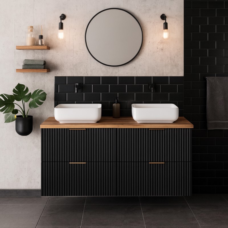 Apportez du style et de la praticité à votre salle de bain avec l’ensemble meuble sous vasque NOXERA. Cet ensemble complet comprend deux meubles sous vasque de 60 cm chacun, associés à un plan pour vasque double de 120 cm. Une solution moderne et fonctionnelle pour vos rangements quotidiens.