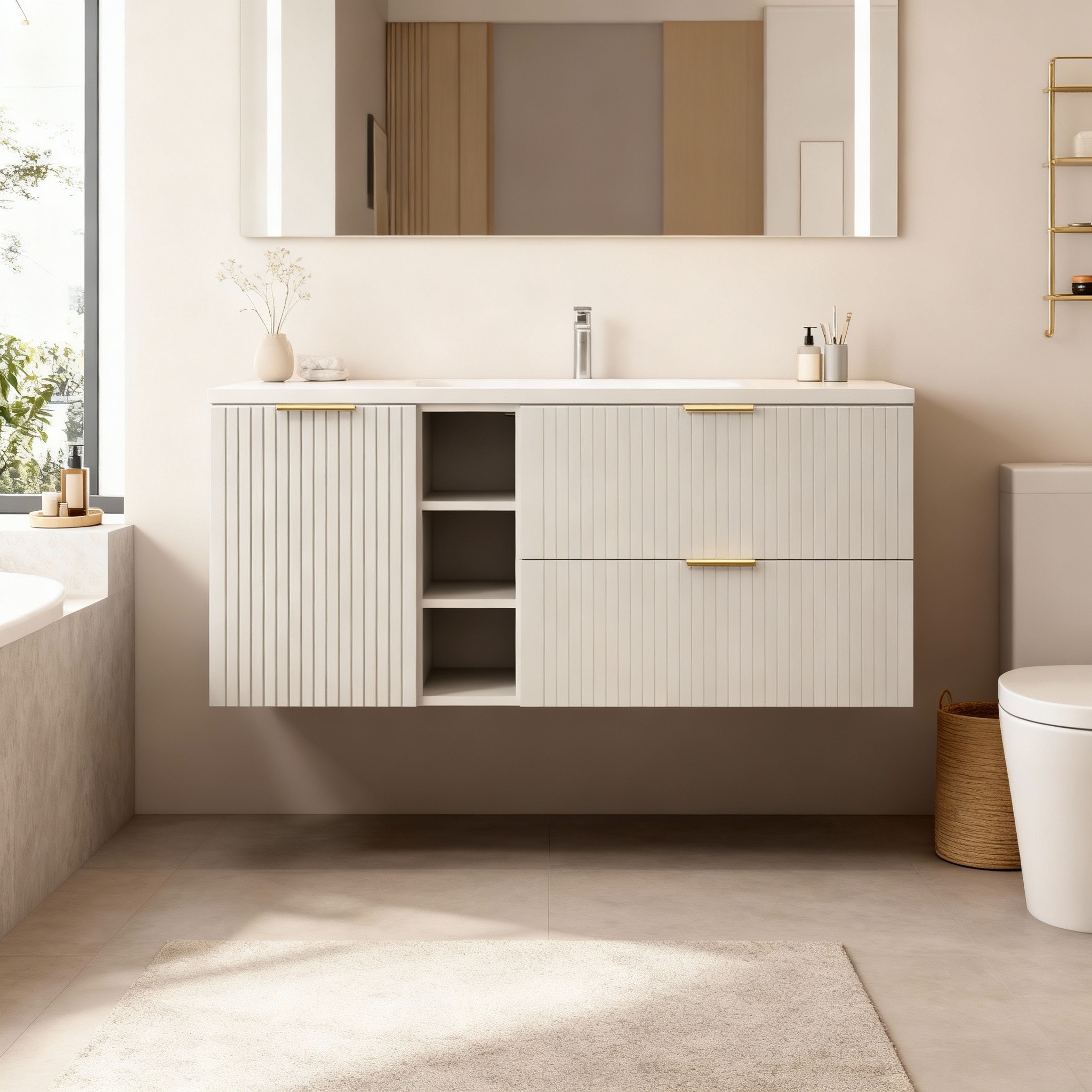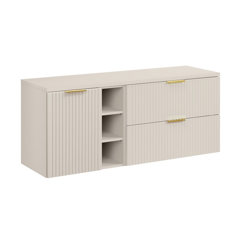 Offrez-vous confort et élégance avec l’ensemble de salle de bains NOXERA 140 cm. Ce modèle généreux comprend deux meubles sous vasque avec, en tout, 4 tiroirs, un plan pour vasque large et une étagère suspendue offrant 2 niches ouvertes assorties pour encore plus de praticité.