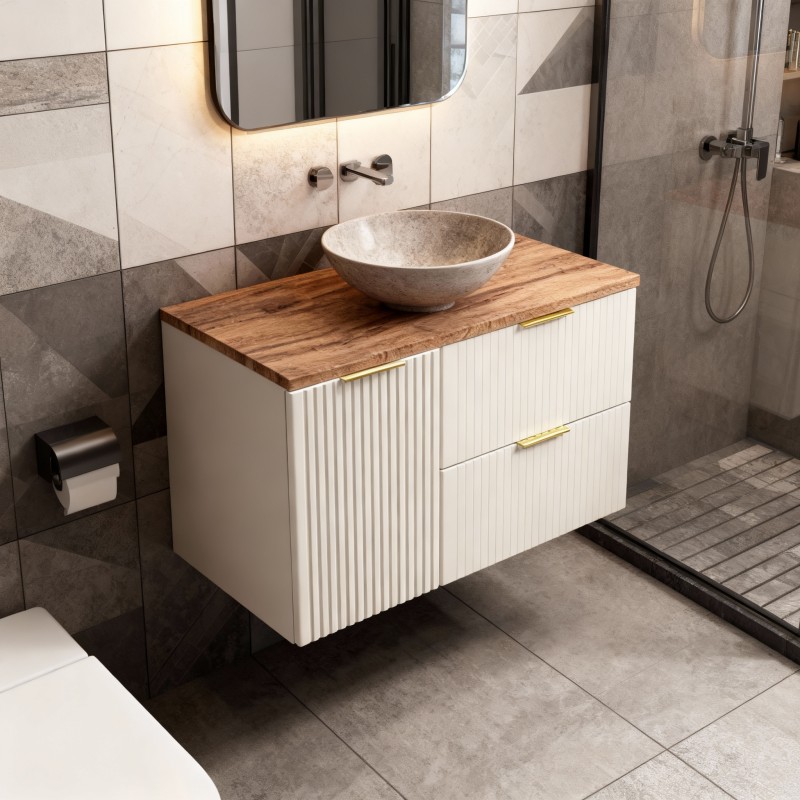 Fabriqué en panneaux de particules et MDF de première qualité, cet ensemble suspendu allie solidité et esthétisme. Sa conception facilite le nettoyage du sol et garantit une installation durable.
