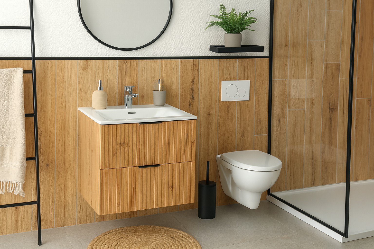 Optez pour un style naturel et contemporain avec cet ensemble de salle de bain NOXERA 60 cm au coloris chêne wotan. Compact et élégant, il s’intègre facilement dans toutes les salles de bain modernes.