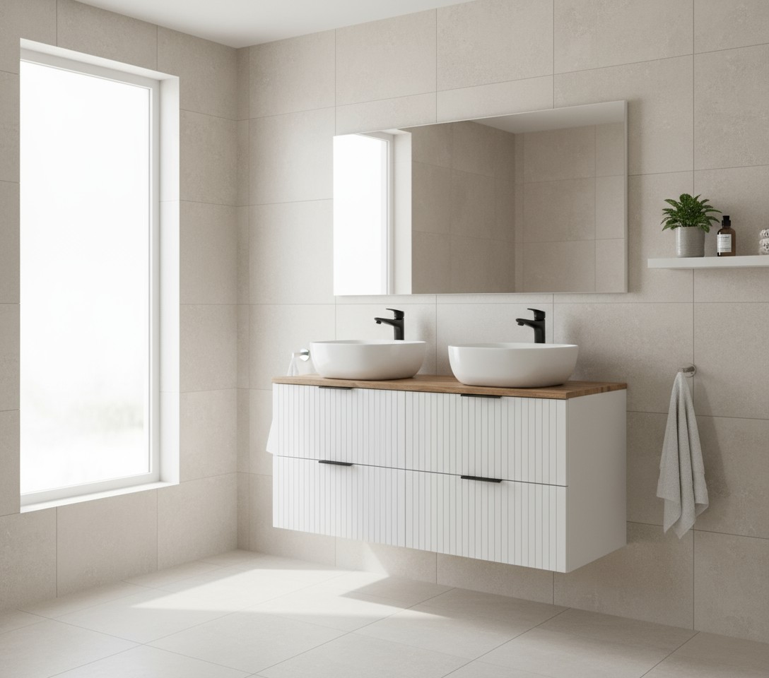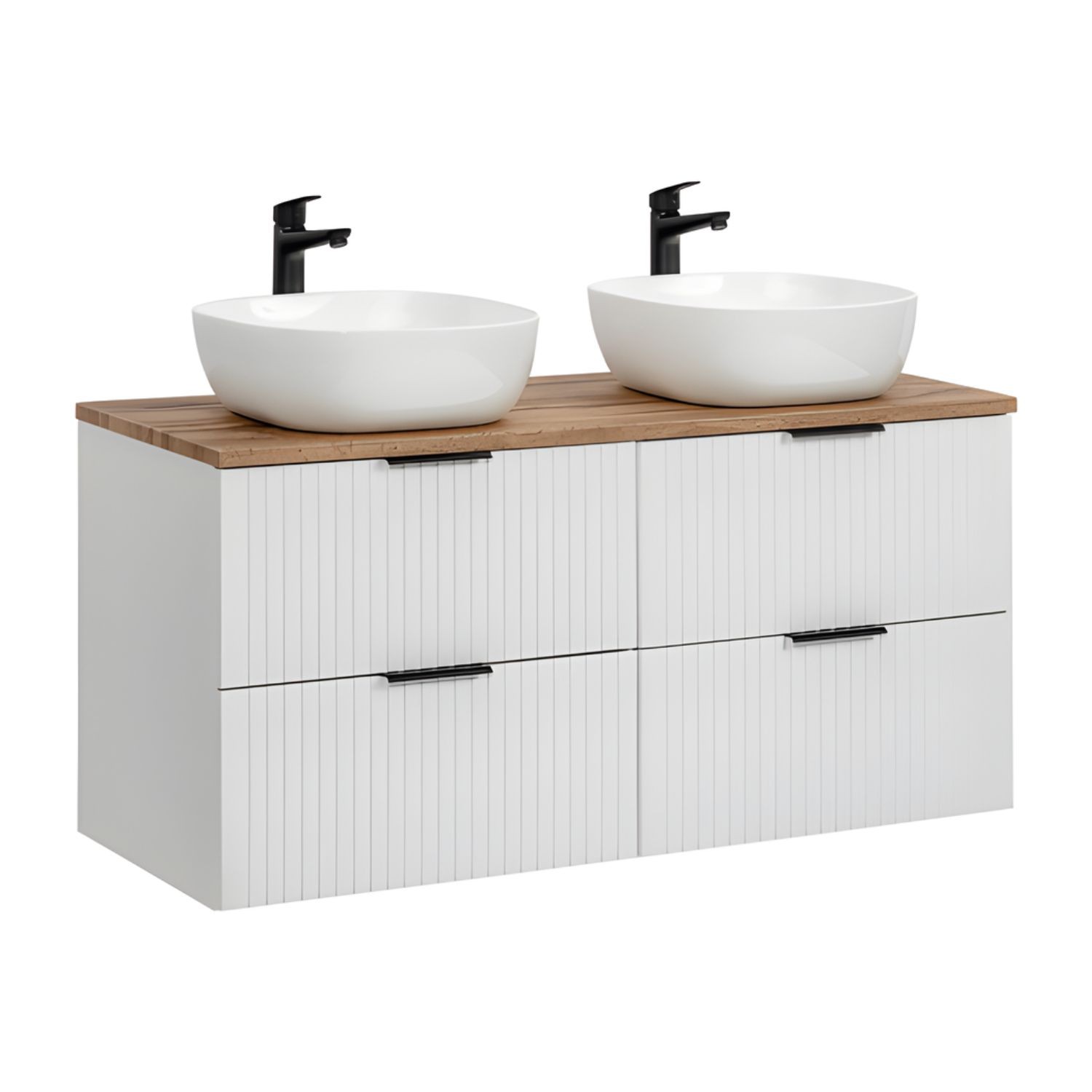 | Contenu du pack | 2 meubles sous vasque, 2 vasques rondes, 1 plan vasque 120cm |