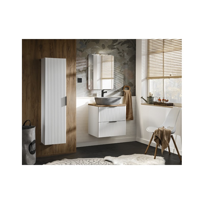 Créez une salle de bain élégante et lumineuse avec cet ensemble NOXERA 60 cm au design moderne. L’alliance du blanc mat, du chêne wotan et de la vasque imitation marbre apporte une touche sophistiquée et naturelle à votre intérieur.