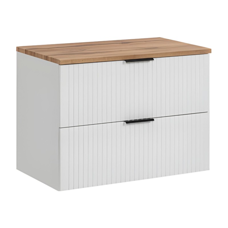 Apportez une touche naturelle et contemporaine à votre salle de bain avec le meuble sous vasque NOXERA 80 cm. Sa finition blanc mat et chêne wotan crée un contraste harmonieux et chaleureux, idéal pour un intérieur moderne.