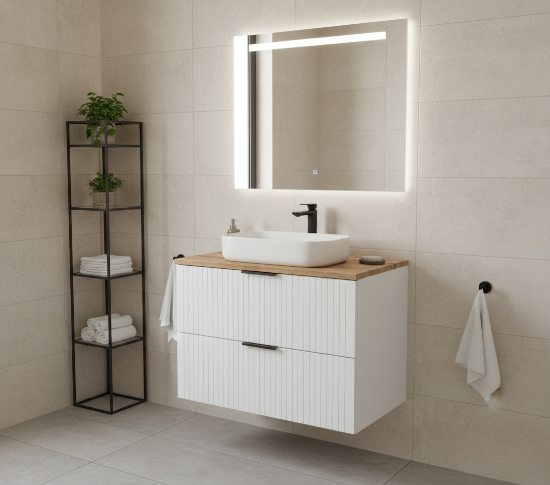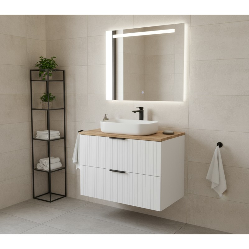 Le NOXERA 80 cm séduit par ses lignes épurées et son esthétique chaleureuse. Son format compact est idéal pour les salles de bain de taille moyenne souhaitant allier élégance et fonctionnalité.