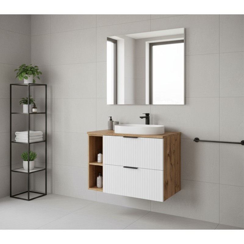 Compact et raffiné, le NOXERA 80 cm s’intègre facilement dans les petites et moyennes salles de bain. Ses rangements multiples offrent une organisation pratique tout en conservant un style sobre et harmonieux.