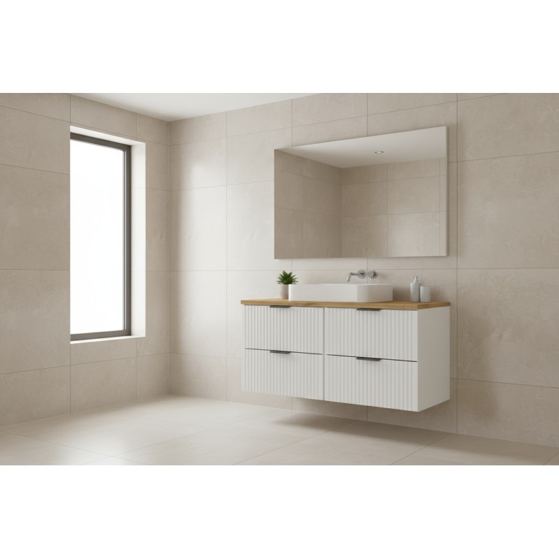 Le mariage du blanc mat et du chêne clair confère à cet ensemble une esthétique naturelle et apaisante. Idéal pour une salle de bain à la fois design et accueillante, le NOXERA 120 cm offre un équilibre parfait entre fonctionnalité et élégance.