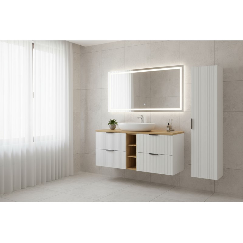 Avec ses rangements spacieux et ses lignes épurées, l’ensemble NOXERA 140 cm est idéal pour créer une salle de bain moderne et bien organisée. Sa conception suspendue facilite le nettoyage du sol tout en apportant une impression de légèreté et d’élégance.