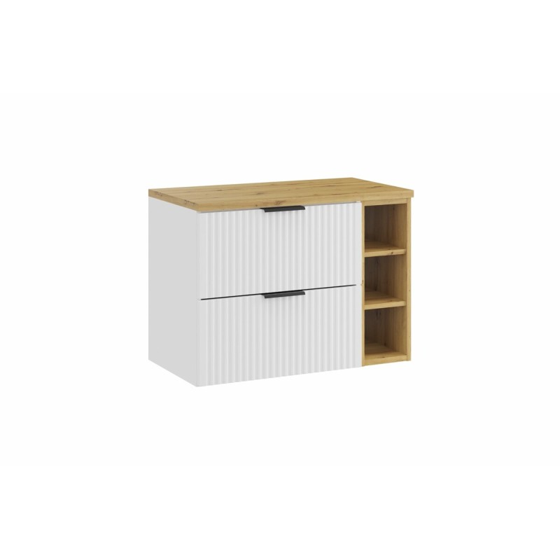 Idéal pour les salles de bain contemporaines, cet ensemble NOXERA 80 cm offre un bel équilibre entre esthétique et fonctionnalité. Ses niches ouvertes ajoutent une touche déco tout en offrant un espace de rangement supplémentaire.