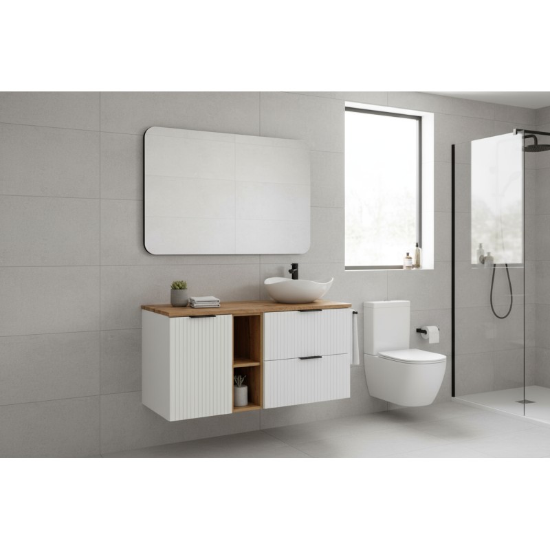 Craquez pour l’élégance naturelle de l’ensemble NOXERA 120 cm. L’association du blanc alpin mat et du chêne wotan crée une atmosphère à la fois moderne et chaleureuse, idéale pour une salle de bain raffinée et accueillante.