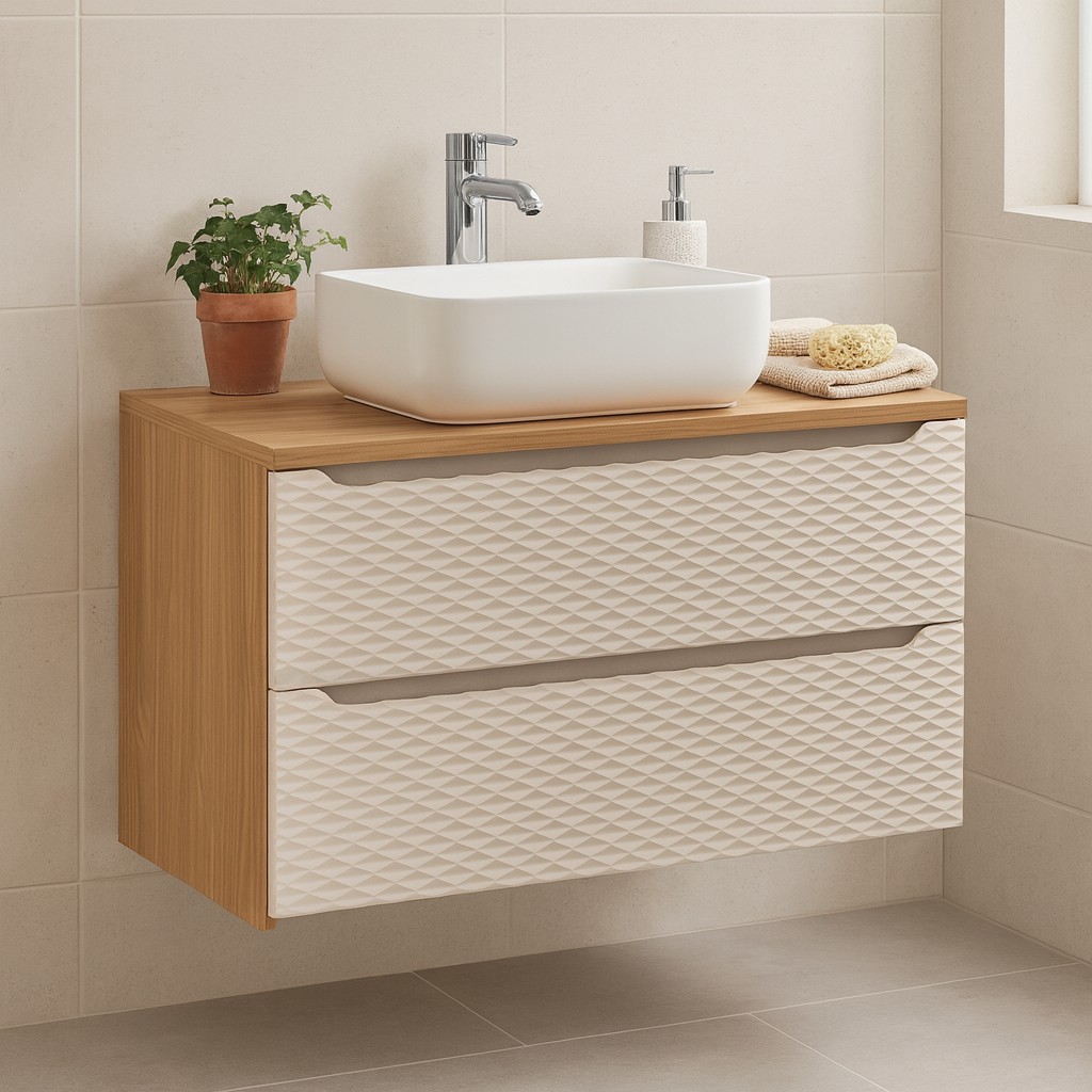 Le meuble suspendu en MDF et panneaux de particules de première qualité dispose de 2 tiroirs profonds pour un rangement optimal. Le plan vasque assorti apporte une finition épurée et raffinée. L’ensemble YOKA 120 cm combine design suspendu, robustesse européenne et entretien facile pour un usage quotidien agréable.