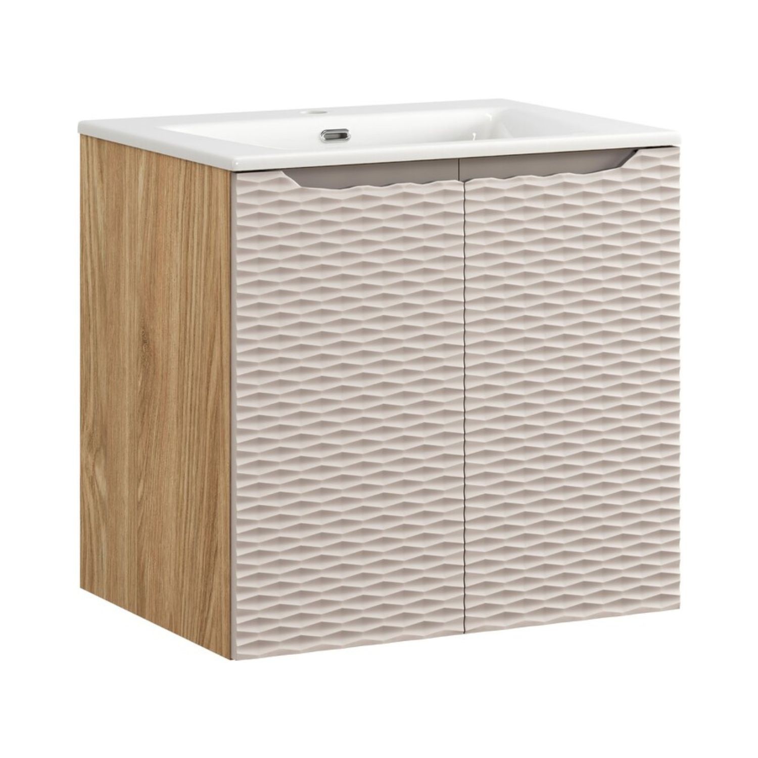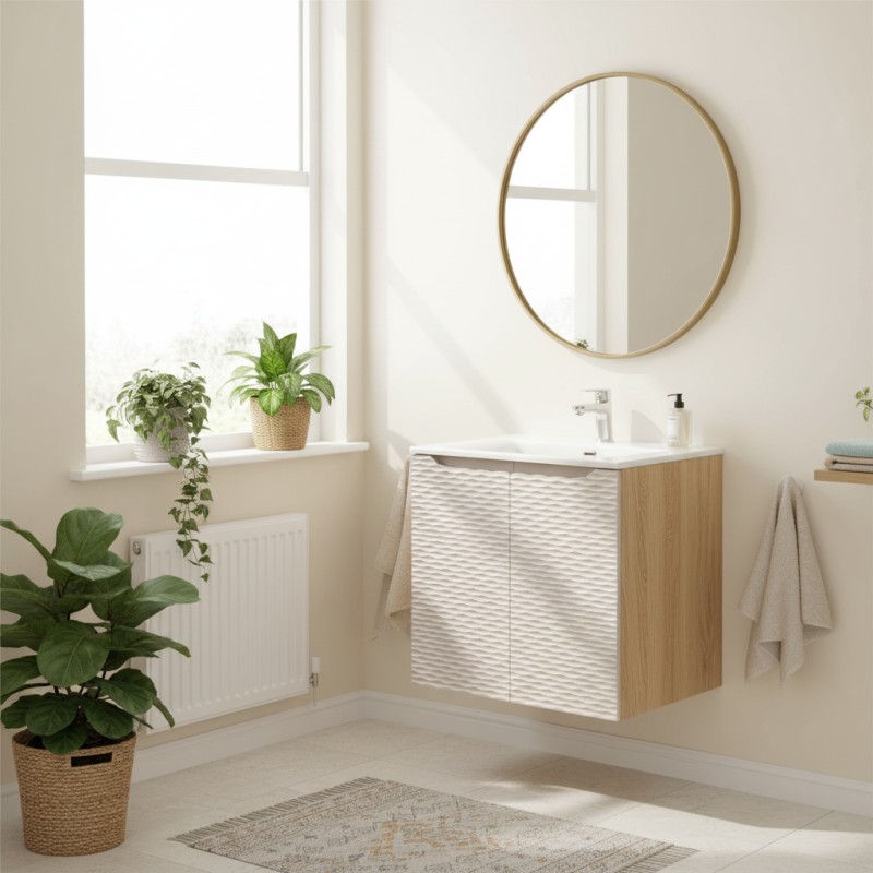 Le meuble sous vasque YOKA 60 cm allie design moderne et fonctionnalité dans un format compact idéal pour les petites salles de bain. Sa structure suspendue, associée à une vasque encastrée en céramique blanche, offre un rendu élégant tout en optimisant l’espace disponible.