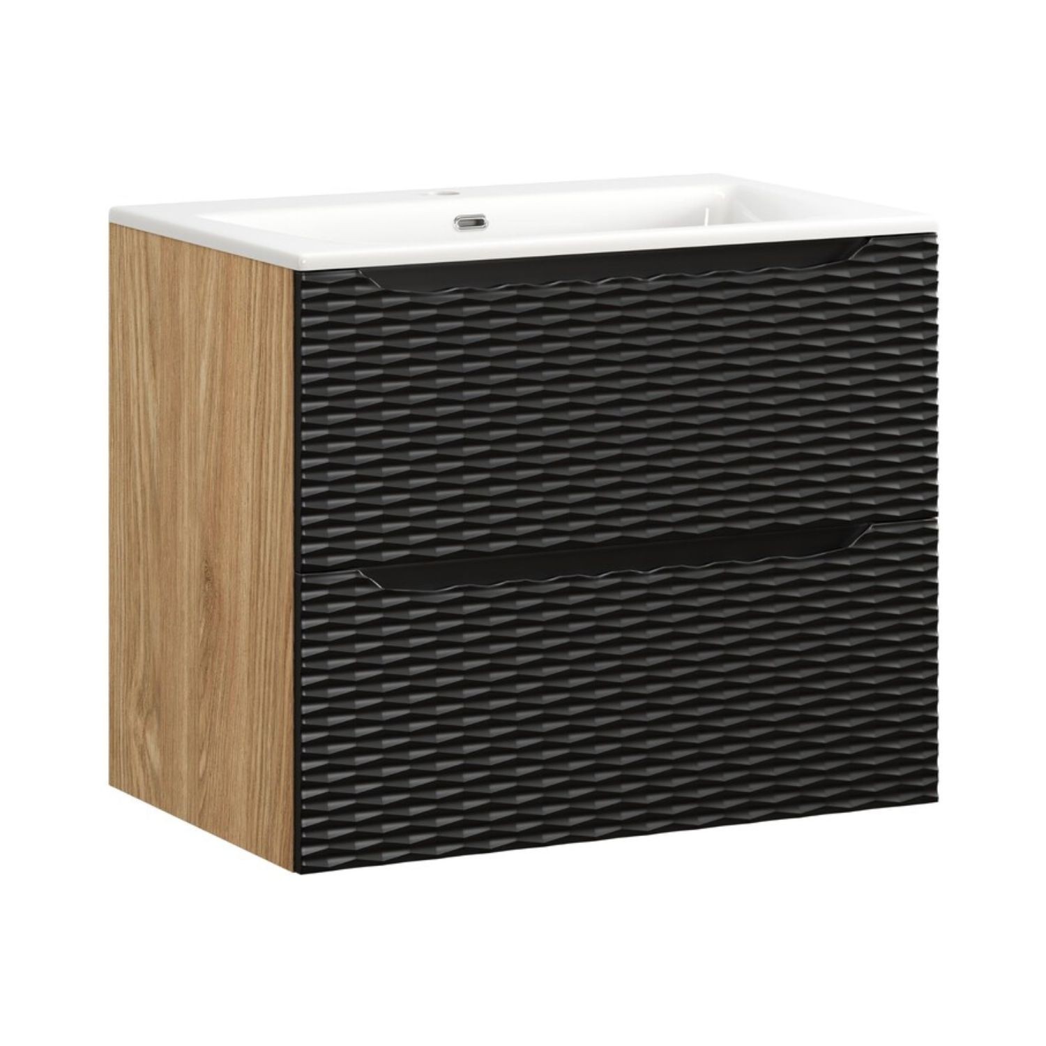 Le mélange du chêne clair et du noir mat confère un style chic et intemporel à votre salle de bain. Fabriqué en MDF et panneaux de particules de première qualité, cet ensemble offre une excellente résistance à l’humidité et un entretien facile.