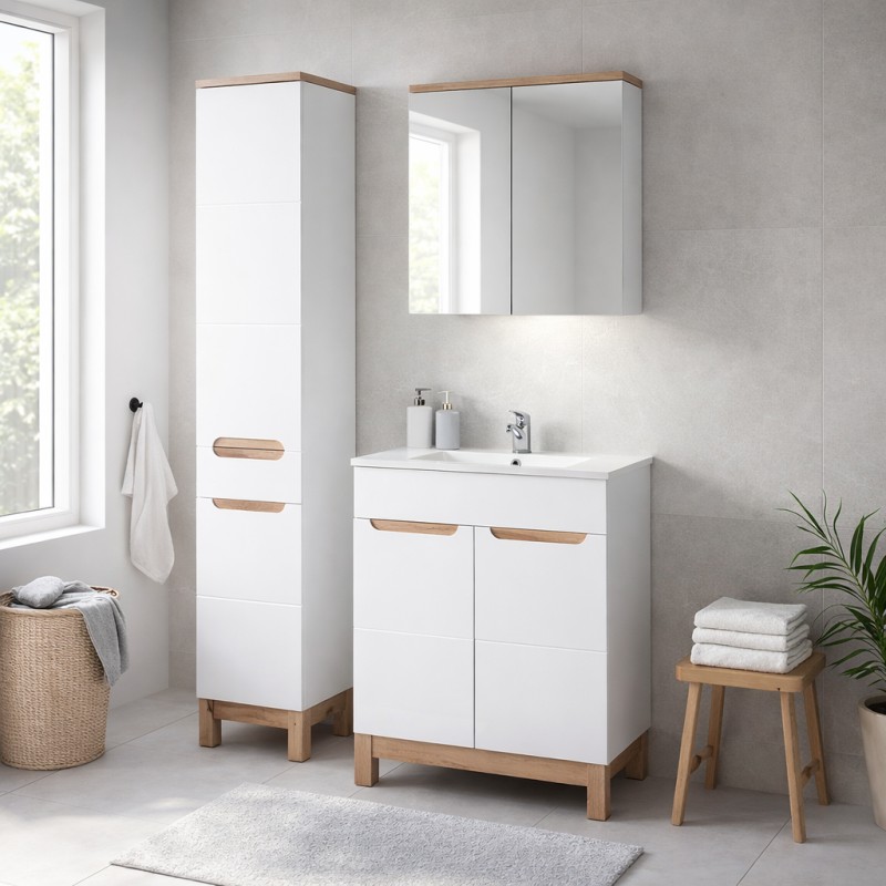 Optimisez votre salle de bain avec cet ensemble ERMANO 95 cm, pensé pour offrir un excellent équilibre entre rangement et élégance. Il se compose d’un meuble sous vasque 60 cm, d’une vasque rectangulaire à encastrer en céramique, d’un meuble de rangement avec miroirs, d’une colonne de rangement et d’un siphon inclus, pour une installation complète et harmonieuse.