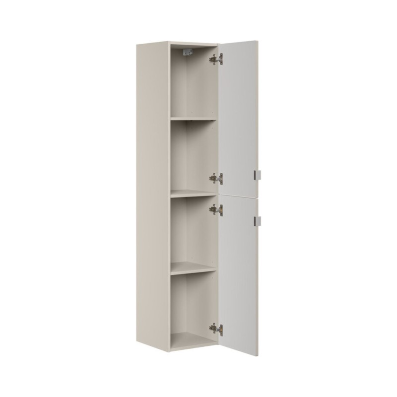 Pensé pour les espaces généreux, cet ensemble offre un équilibre parfait entre fonctionnalité et esthétisme. Les meubles sous vasque avec tiroirs coulissants permettent une organisation fluide du quotidien, tandis que les niches visibles ajoutent une touche décorative idéale pour exposer accessoires et paniers. Les deux vasques rondes en céramique apportent douceur et caractère à l’ensemble, renforçant son style contemporain. La colonne verticale complète l’aménagement en optimisant le rangement sans alourdir visuellement la pièce. Son coloris cachemire mat crée une atmosphère chaleureuse et raffinée.
