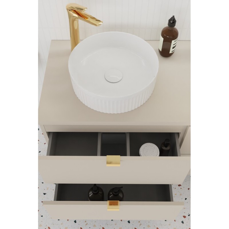 Grâce à sa largeur de 120 cm, cet ensemble permet d’aménager un espace confortable et bien structuré. Les tiroirs coulissants assurent un rangement pratique et organisé pour vos produits du quotidien. Le plan pour vasque unifie l’ensemble et permet l’installation d’une ou deux vasques à poser selon vos besoins. La colonne suspendue optimisent la hauteur et augmentent la capacité de rangement sans encombrer visuellement la pièce. Son coloris cachemire mat apporte douceur et élégance à votre salle de bain.
