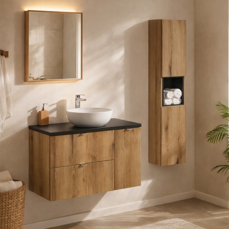 Apportez du caractère à votre salle de bain avec cet ensemble VANO 90 cm, pensé pour allier esthétique moderne et fonctionnalité optimale.