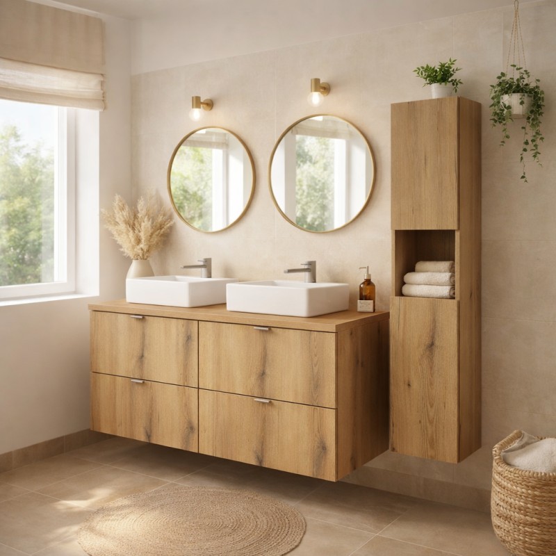Sa finition aspect chêne foncé apporte du caractère et une ambiance chaleureuse, parfaite pour une salle de bain moderne et élégante.