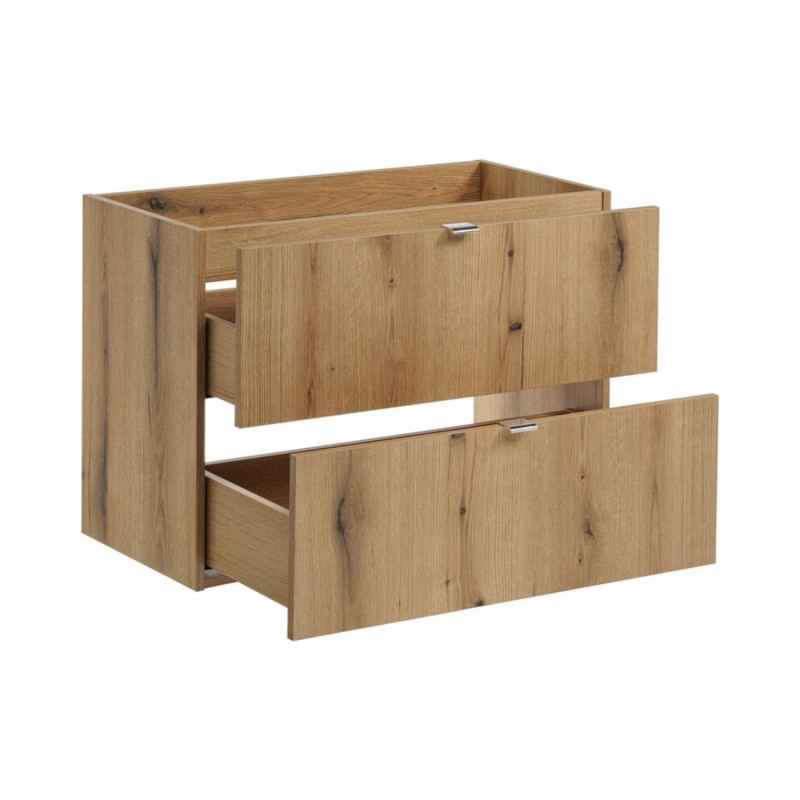 Le meuble sous vasque en aspect chêne foncé avec 2 tiroirs permet d’organiser efficacement vos produits du quotidien grâce à un rangement pratique et accessible.