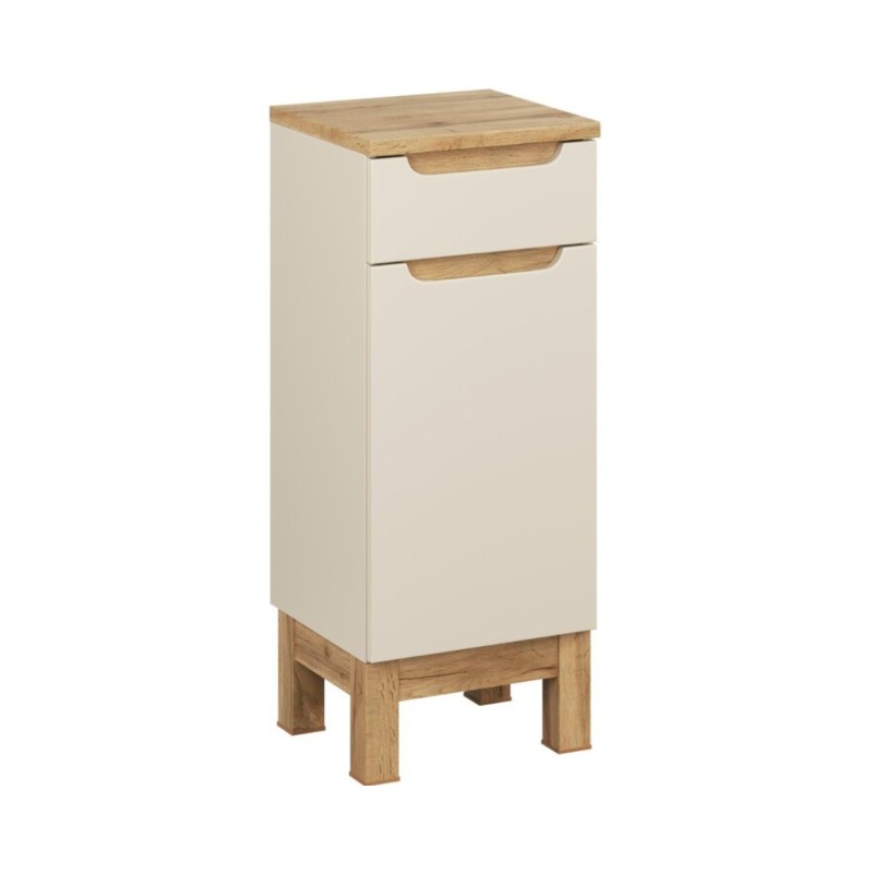 L’association du coloris cachemire et du chêne clair apporte une ambiance chaleureuse et contemporaine à votre salle de bain.