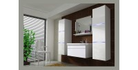 - CARACTÉRISTIQUES : 3 portes, LEDS avec choix de coloris et Télécommande, Siphon inclus, Petite tablette de rangement intégrée au miroir, colonne composée de 2 tablettes en verre sur lesquelles clipser les leds.