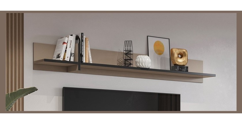 Apportez une touche contemporaine et élégante à vos murs avec l'étagère murale HAVANA. Avec ses dimensions de 180 cm de largeur, 23 cm de hauteur, et 22,5 cm de profondeur, elle est idéale pour exposer vos objets décoratifs tout en ajoutant une touche de style moderne. Le coloris beige et noir s'accorde parfaitement avec tous les types de décoration intérieure.
