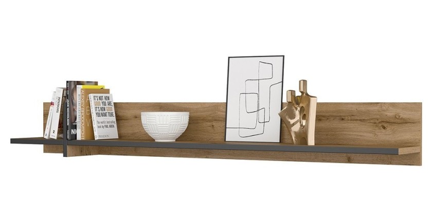 Apportez une touche contemporaine et élégante à vos murs avec l'étagère murale HAVANA. Avec ses dimensions de 180 cm de largeur, 23 cm de hauteur, et 22,5 cm de profondeur, elle est idéale pour exposer vos objets décoratifs tout en ajoutant une touche de style moderne. Le coloris chêne et noir s'accorde parfaitement avec tous les types de décoration intérieure.