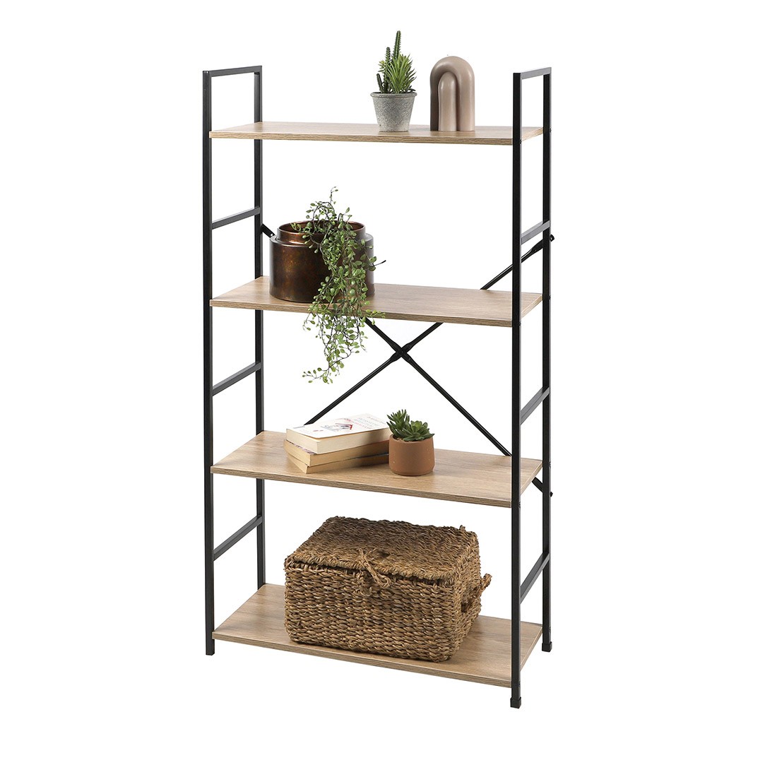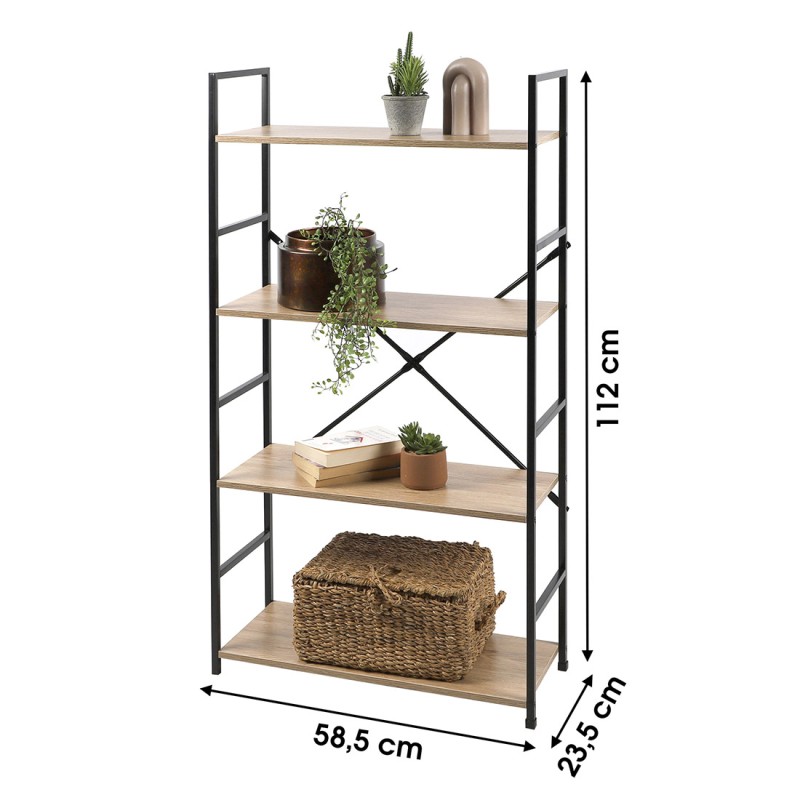 Apportez une touche industrielle à votre espace de vie avec la bibliothèque HOLBORN à 4 niveaux. Avec une structure en métal noir et des panneaux de particules coloris chêne, cette bibliothèque de 59 cm de largeur et 112 cm de hauteur est parfaite pour ranger vos livres ou objets décoratifs dans un style moderne.