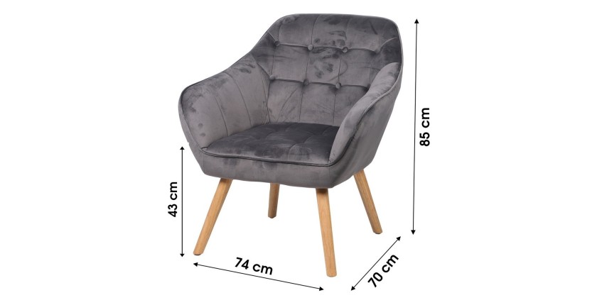 Apportez une touche de douceur moderne à votre intérieur avec ce fauteuil en velours gris de la collection VELUREA. Conçu avec des pieds en bois, ce fauteuil combine élégance et confort grâce à son revêtement en velours gris. Ses dimensions de 74x70xH85 cm et sa hauteur d'assise de 43 cm offrent un confort idéal pour le salon, la chambre ou un coin détente. Le coloris gris s'intègre parfaitement dans des décors modernes et classiques, apportant une touche raffinée et apaisante.