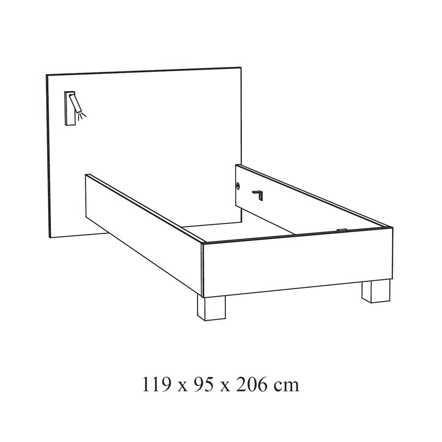 * Lit + tête de lit : L119 x H95 x P206 cm (couchage 90x200 cm).