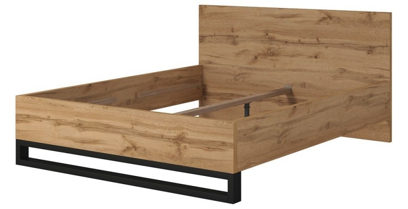 Le lit MILOS en couchage 160x200 est l'élément incontournable pour une chambre à coucher moderne et élégante. Avec son coloris chêne brut et ses pieds design noir, il apporte une touche de sophistication à votre pièce.