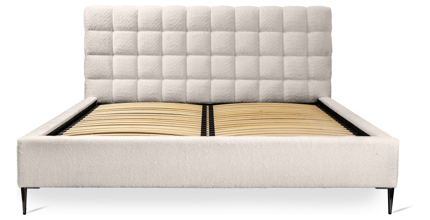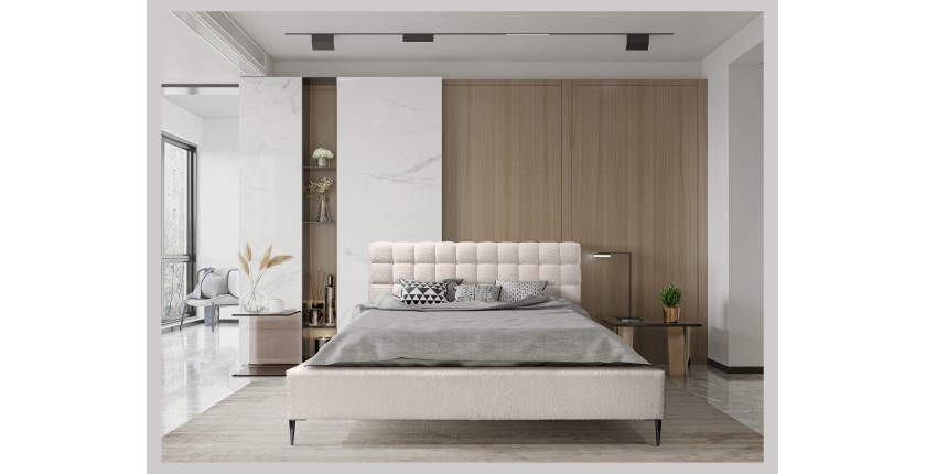 Offrez à votre chambre une allure d’exception avec le lit MILLIO 180x200 cm en tissu chenille bouclé crème. Sa teinte lumineuse et sa texture ultra douce invitent au repos dans un cadre élégant et chaleureux, digne des plus grandes suites hôtelières.