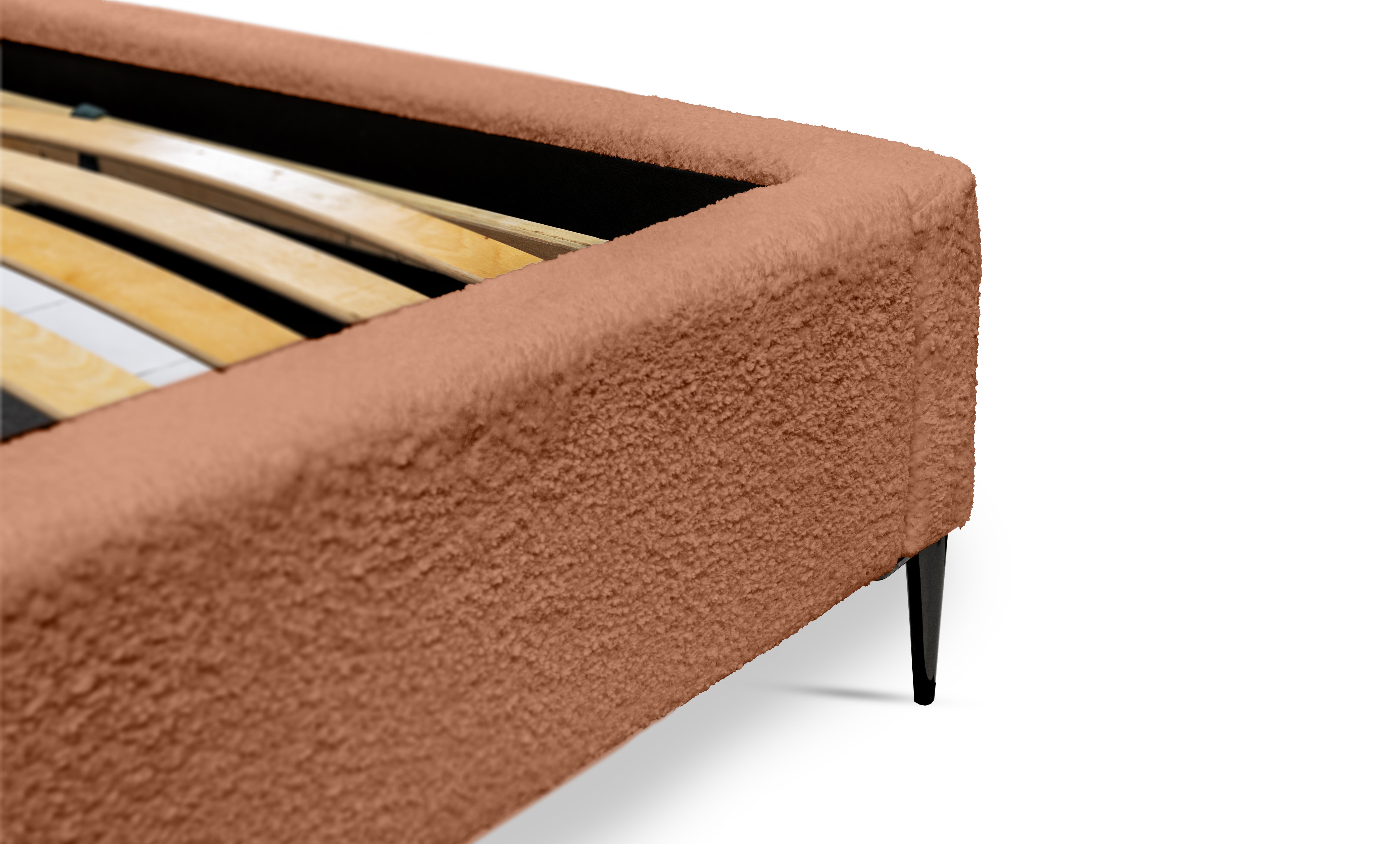 Le lit MILLIO est conçu pour les amoureux du confort et du design. Avec son revêtement chenille bouclé ultra doux coloris terracotta, il évoque une ambiance chaleureuse et tendance. Sa finition soignée et son inspiration hôtelière en font un choix parfait pour une chambre adulte raffinée, accueillante et durable.