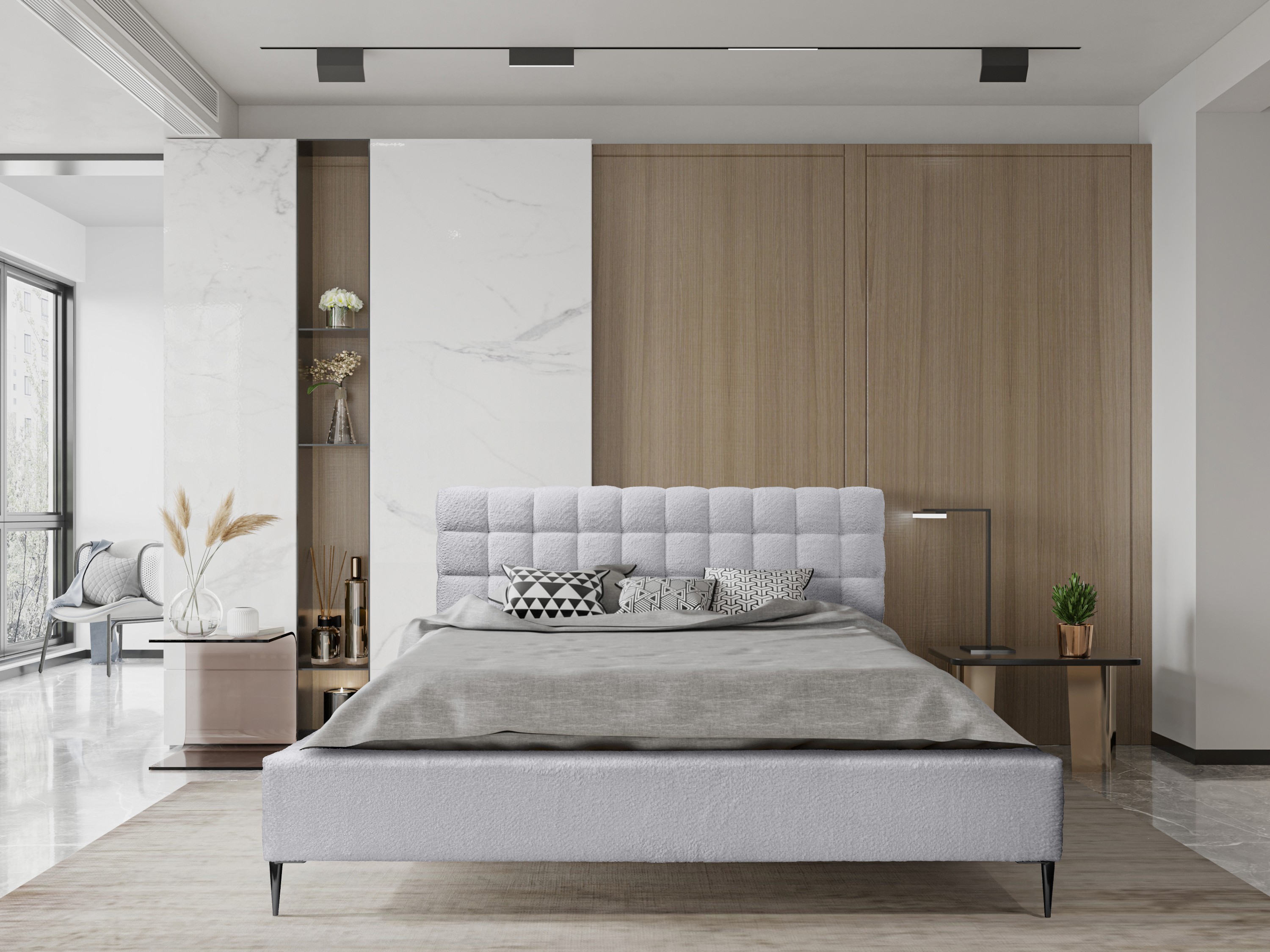 Le lit MILLIO est une valeur sûre pour les amateurs de décoration épurée et de confort premium. Son revêtement chenille bouclé blanc illumine la pièce tout en s’adaptant facilement à tous les styles. C’est le lit idéal pour une chambre adulte haut de gamme, sobre et élégante.