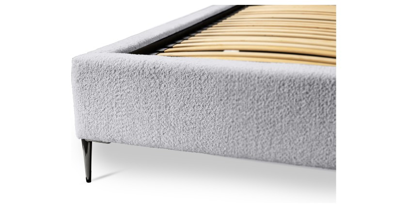 Offrez à votre chambre un style lumineux, raffiné et haut de gamme avec le lit MILLIO 180x200 cm en tissu chenille bouclé blanc. Ce modèle grand format combine une esthétique épurée et un confort premium, inspiré des plus belles chambres d’hôtel de luxe.