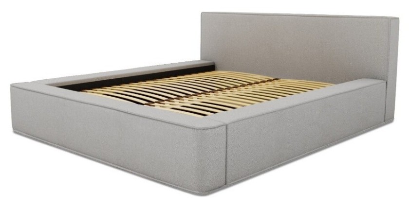 Sa tête de lit droite de 86 cm lui confère un style moderne et épuré. Le sommier à lattes en bois sur cadre métallique est équipé de vérins à gaz pour une ouverture facile et sécurisée. Sa structure robuste en bois, métal, mousse et panneaux de particules garantit durabilité et confort.