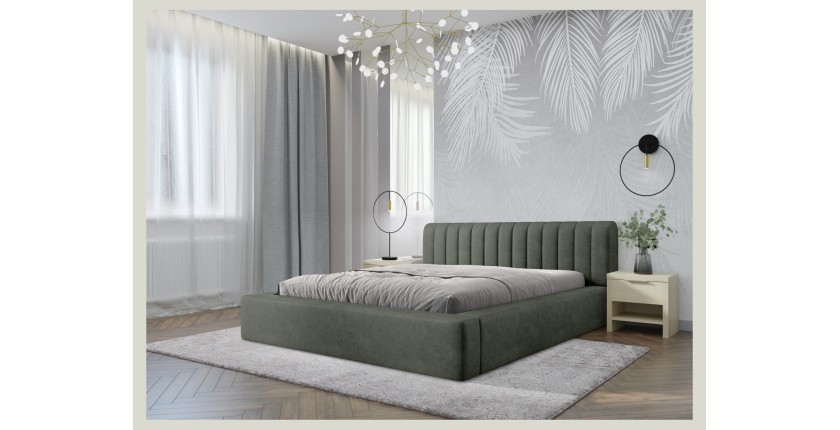 Apportez une ambiance naturelle et raffinée à votre chambre avec le lit coffre CERVIN recouvert d’un tissu velours doux Sauge Nocturne. Sa teinte douce et son toucher agréable créent une atmosphère apaisante et chaleureuse.