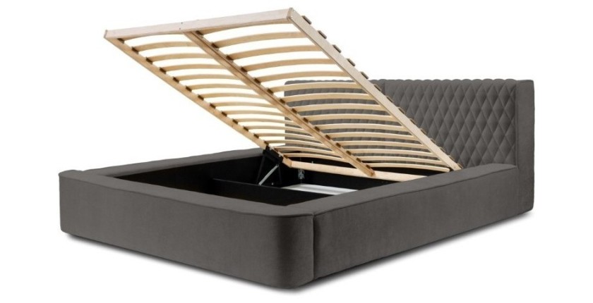 Ce lit coffre allie des matériaux nobles — bois massif, métal renforcé, mousse haute densité — pour une robustesse et un confort exceptionnels. Son sommier relevable équipé de lattes en bois massif sur cadre métallique avec vérins à gaz permet un accès facile à un coffre spacieux, parfait pour optimiser votre rangement.