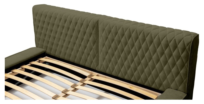Apportez une touche naturelle et raffinée à votre chambre avec le lit coffre VERNON habillé d’un tissu chenille bouclé Feuille d'olivier haut de gamme. Sa texture douce et sa teinte apaisante créent une ambiance chaleureuse et élégante.
